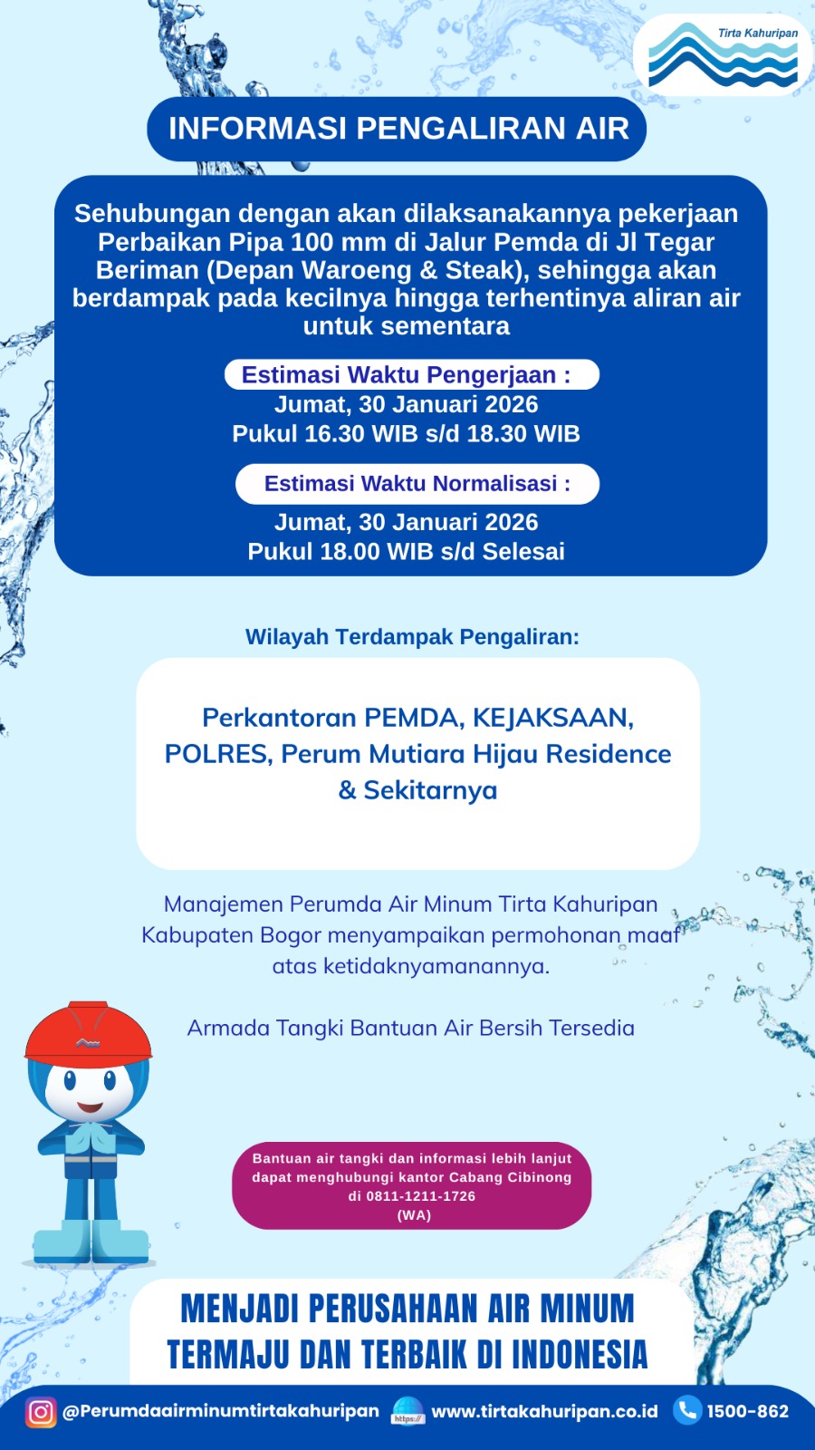 [CAB. CIBINONG] INFO PENGALIRAN AIR 1 JANUARI 2026